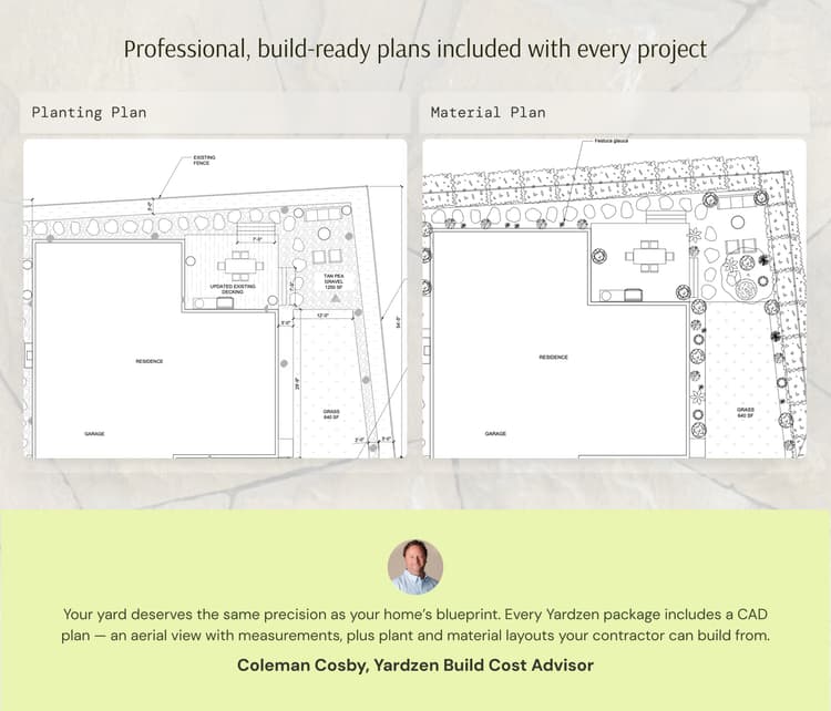 We'll help you source competitive bids to build your design. With Yardzen, you own your designs and are in control of spend and timeline.