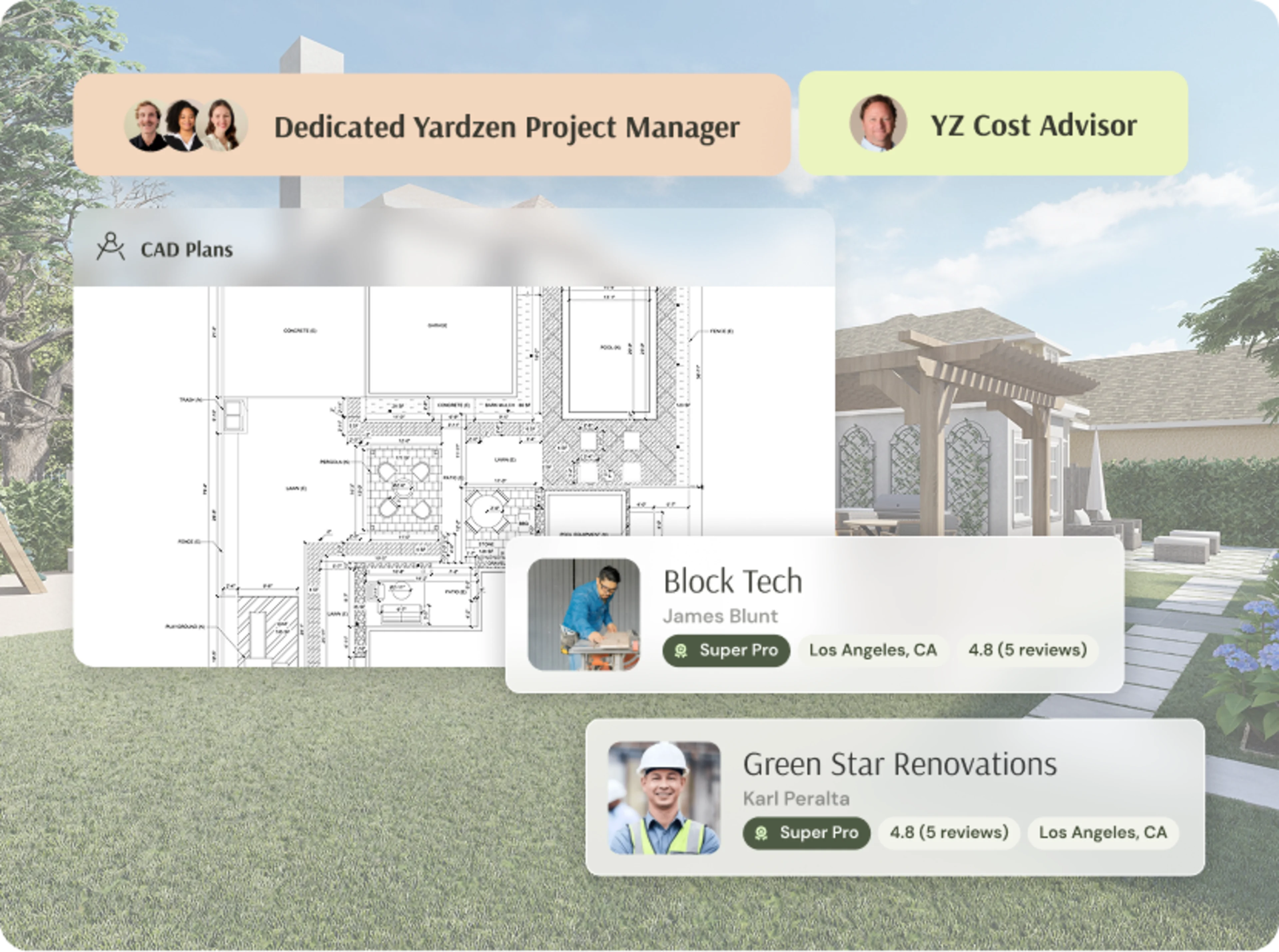 Your Project Manager will help you source competitive bids from the Yardzen Pro Network to build your design. You own your designs forever, giving you full control over your spend and timeline.