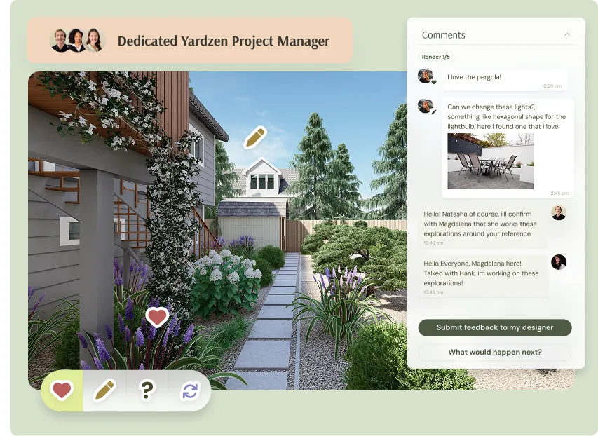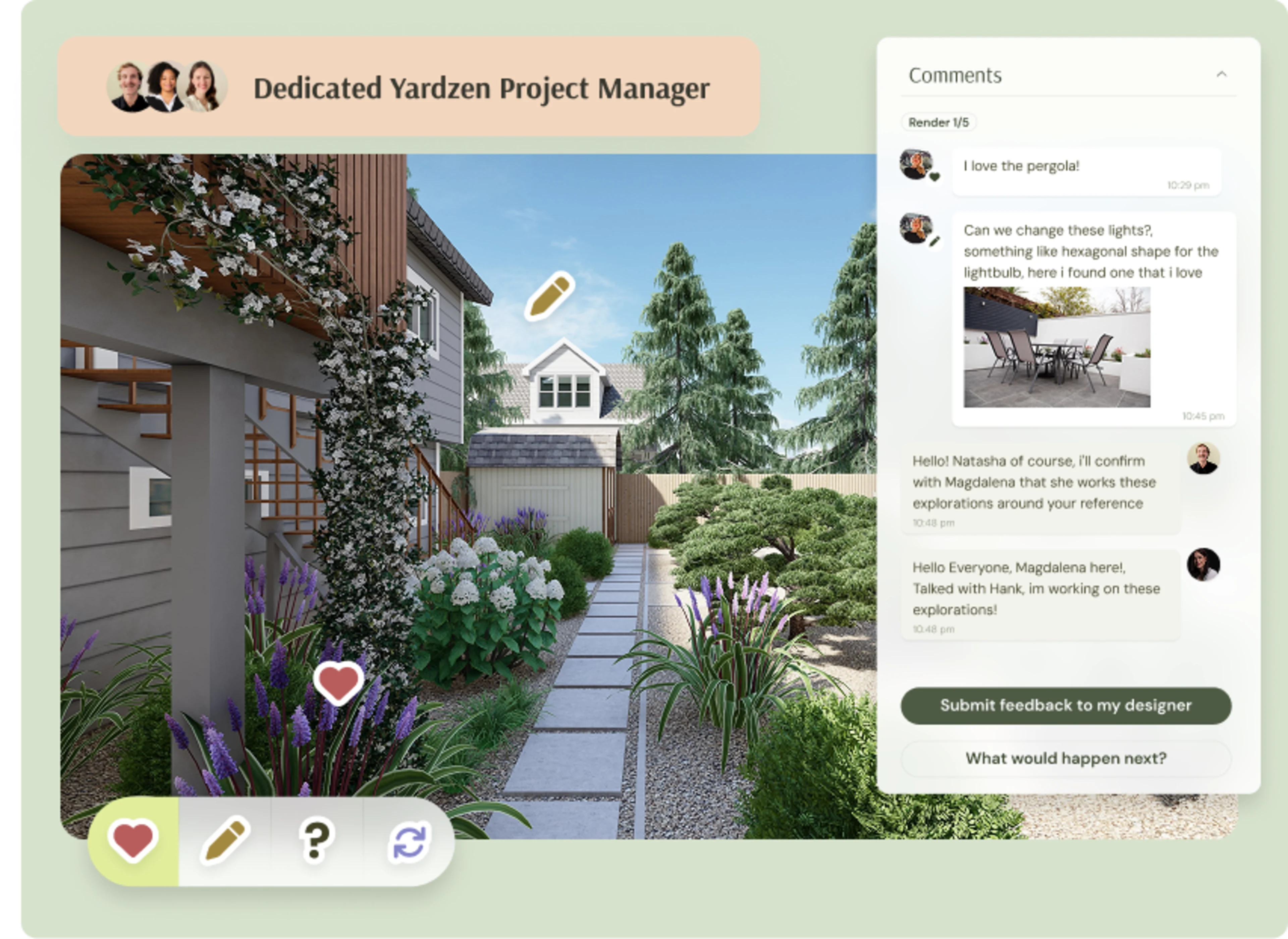 Love Yardzen, they help get the design i envisioned into something tangible so I can better get results I want when sharing with contractors.